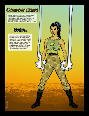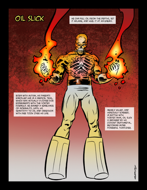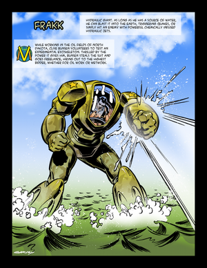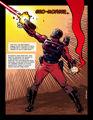 Taps into the geothermal energy within the earth’s crust, channeling it through his huge arsenal of exotic weaponry.